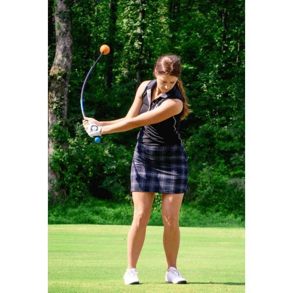 The orange ball replaces the club head and allows you to focus on swinging naturally without worrying about the position of the club face. It’s weighted to promote a fluid swinging motion rather than a jerky hitting motion.