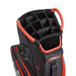 - Among the 14 pockets are two full-length apparel pockets; a ventilated, cooler pocket; a range finder pocket; and two velour-lined pockets, one of which is water-resistant.