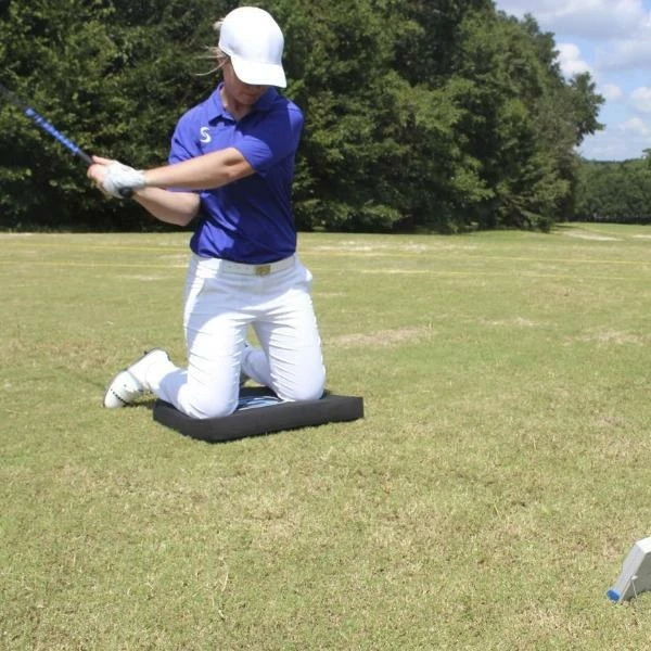The SuperSpeed Stability Pro is made of high-tech foam that will create both a comfortable kneeling pad for the SuperSpeed Training and a challenging, unstable surface for balance training! We manufactured this Stability Mat to provide support when a player has dual contact points with the Mat. This helps players cushion during the kneeling swings and avoid nasty grass stains from the driving range. At the same time, we made sure that this Stability Mat would offer a variety of uses for training stability, balance, PNF, and applying this training directly to the golf swing. Check out our series of Balance and Stability drills online!